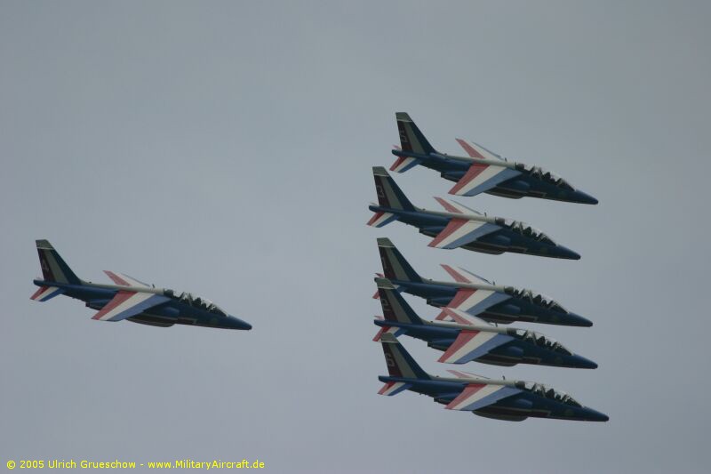 Dassault-Dornier Alpha Jet E (E44/F-UHRE "1", E146/F-UHRR "2", E139/F-UGFC "3", E20/F-TEMS "4", E127/F-UGFK "5", E129/F-TELP "6", E46/F-UHRF "7", E113/F-TETD "8", E87/F-TELC "9"), "La Patrouille de France" (French Air Force Aerobatic Team), French Air Force (Armée de l' Air), BA701 Salon-de-Provence, France