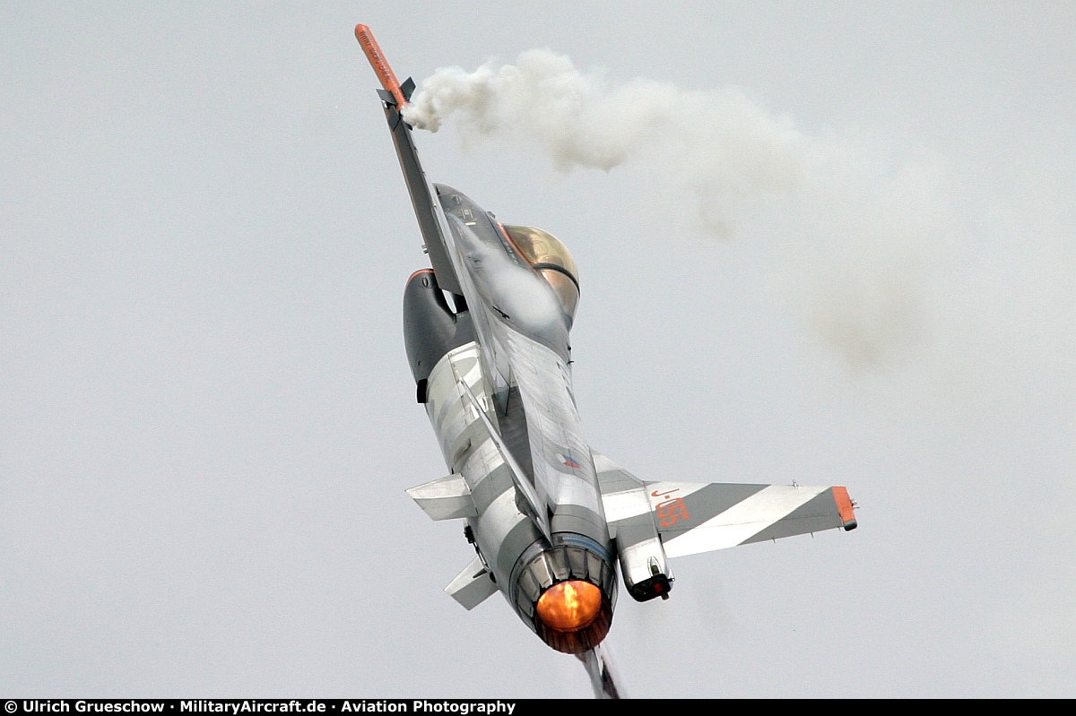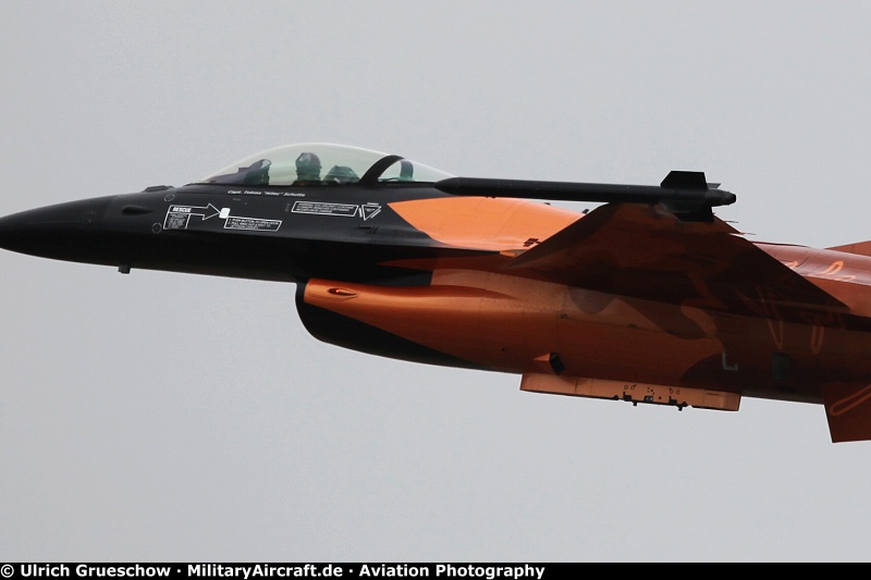 - special markings "Orange Lion" of the Royal Netherlands Air Force (RNLAF) F-16 demo team