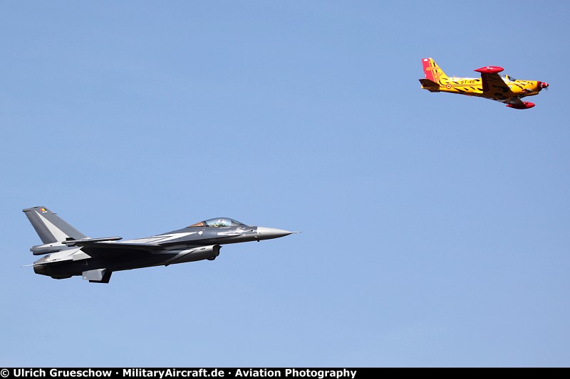 SIAI-Marchetti SF-260D (ST-48) in formation with General Dynamics (SABCA) F-16AM Fighting Falcon (FA-134), Belgian Air Force (Composante Aérienne Belge, Belgische Luchtcomponent)