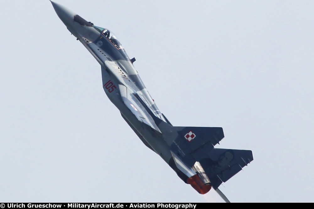 Mikoyan-Gurevich MiG-29A Fulcrum (105), Serial No.: 2960535105, 1st Tactical Squadron, Polish Air Force (Sily Powietrzne Rzeczypospolitej Polskiej), 23rd Air Base Minsk Mazowiecki, Poland