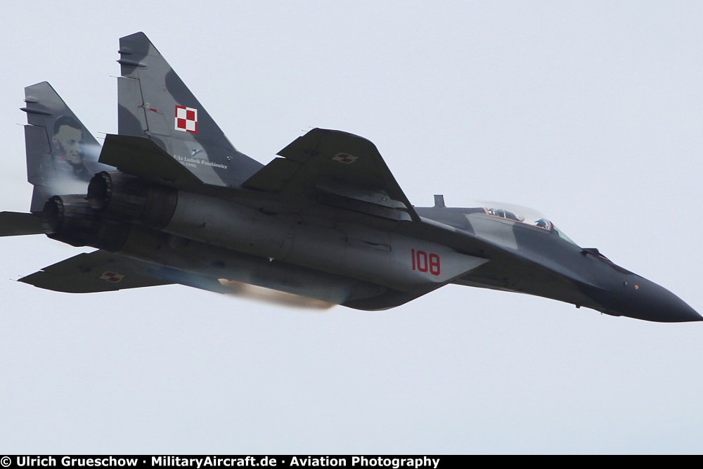 Mikoyan-Gurevich MiG-29A Fulcrum (108), Serial No.: 2960535108, 1st Tactical Squadron, Polish Air Force (Sily Powietrzne Rzeczypospolitej Polskiej), 23rd Air Base Minsk Mazowiecki, Poland