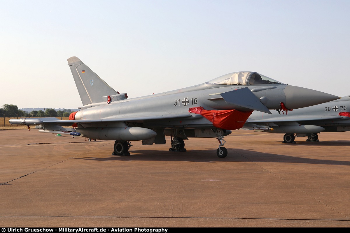 Eurofighter EF-2000 Typhoon S (31+18), Serial No.: AS011, Tactical Air Force Wing 73 (Taktisches Luftwaffengeschwader 73 "Steinhoff", TaktLwG 73), German Air Force (Deutsche Luftwaffe), Laage AB, Germany